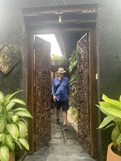 This morning we set out walking a bit earlier, hoping to avoid the heat and humidity a day of sunny weather brings. We walked north today along the beach path, past Icon Bali, as far as our old fave Soul on Beach (about 2 and a half klms from Parigata) where we sat at a table on the sand and enjoyed morning coffees and a great breakfast. We love our morning coffees, especially when they're made this well, but omg they make us sweat in this weather!!